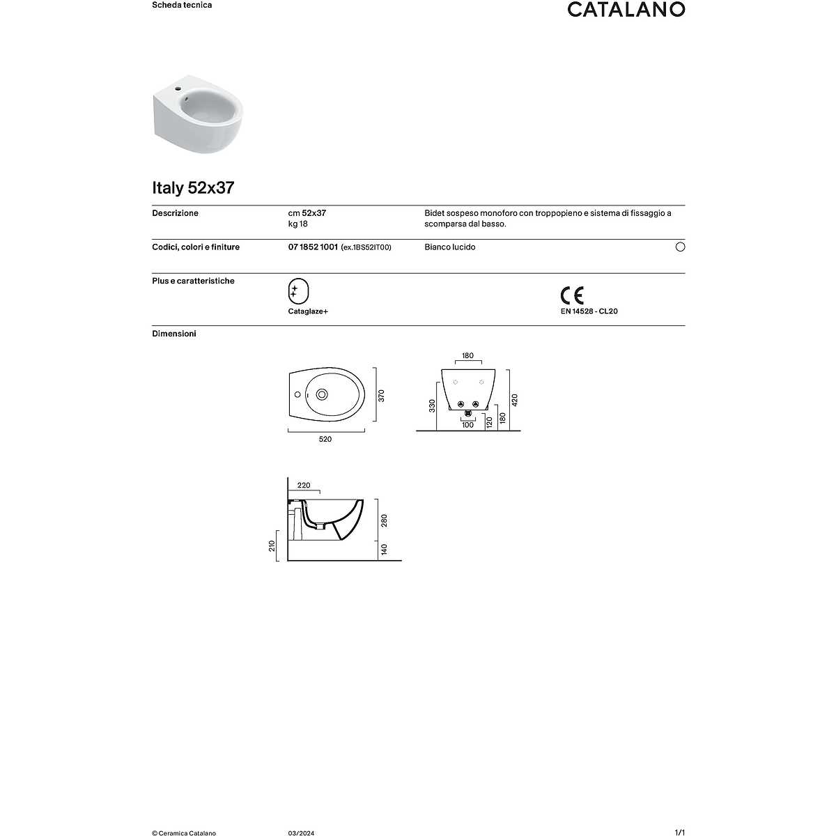 Completa l'armonia del tuo spazio con il bidet sospeso Italy di Catalano, il perfetto complemento del vaso della stessa collezione.