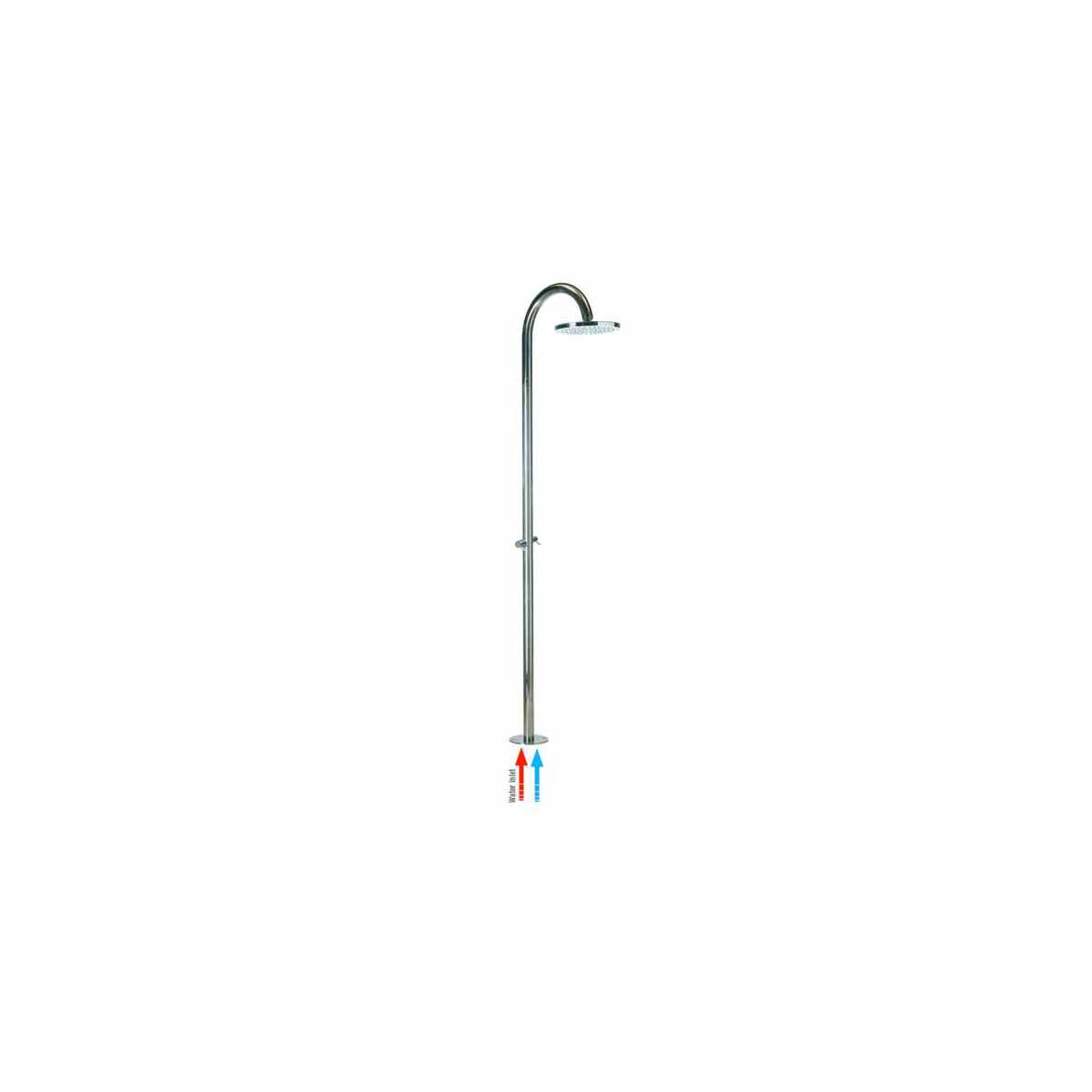 Bodenstehende Duschsäule in rostfreier Stahl : Dieses Produkt wird aufgrund der hervorragenden technischen Eigenschaften von Naturstahl normalerweise im Außenbereich verwendet. Die Säule hat eine Durchmesser Duschkopf 25 mit Easy Clean Anti-Kalk und ist ausgestattet mit zwei Hähne für Heiß-Kaltwasser