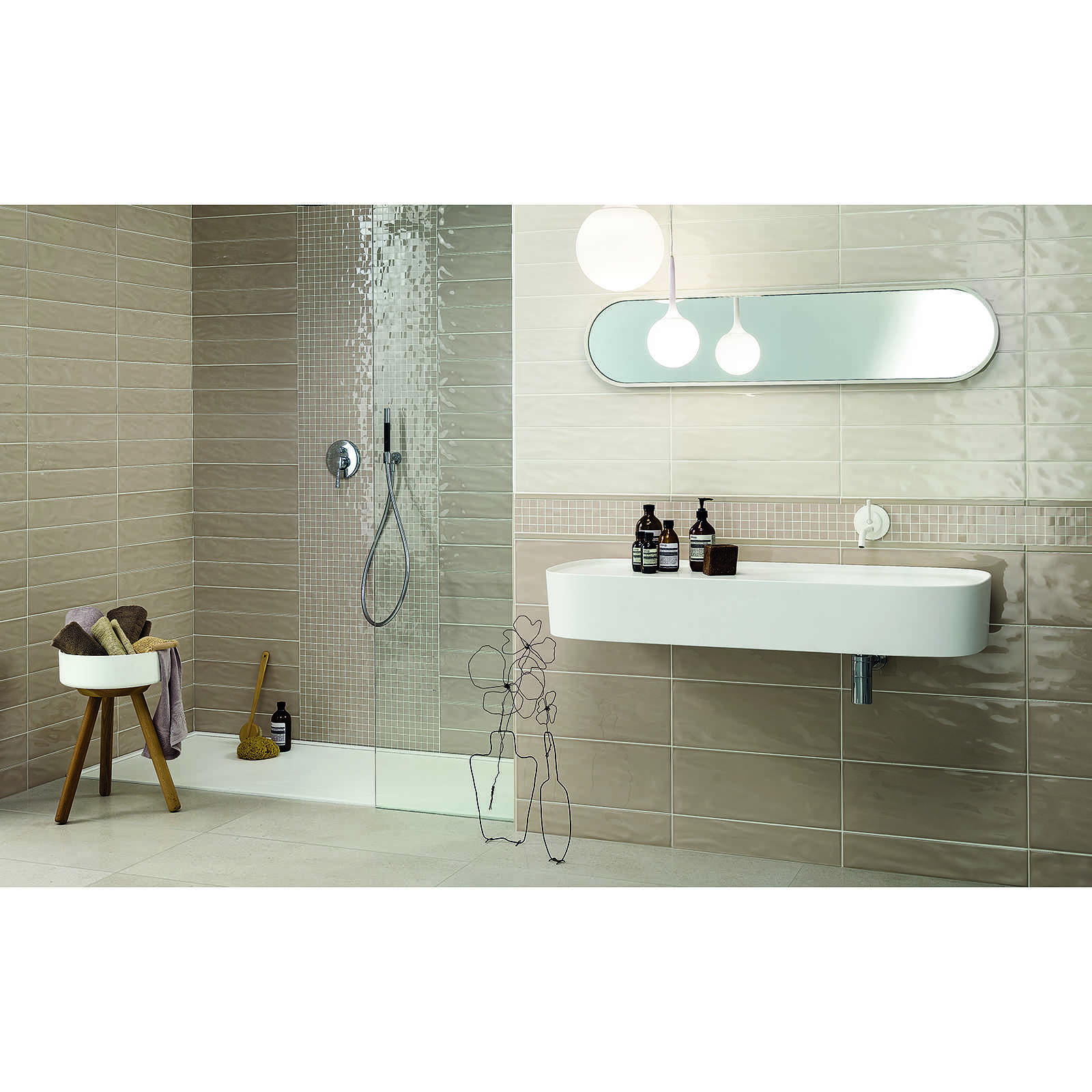 Glänzende Wandfliese mit Welleneffekt, Bone, 20x50 cm - Aria, Dom Ceramiche