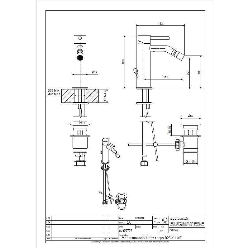 Minimalistischer Bidet-Mischer aus verchromtem Messing – K-Linie 5725, Bugnatese-Armaturen