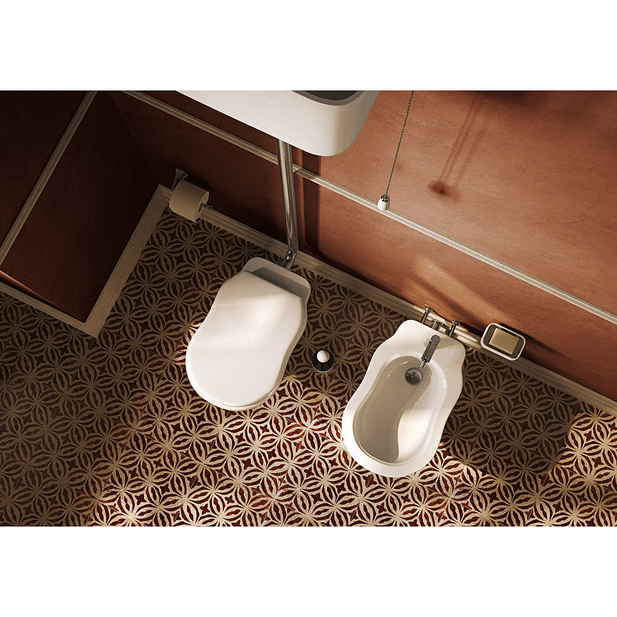 Set aus WC und Bidet mit Bodenablauf, Softsitz, matt milchweiß - Efi, Flaminia