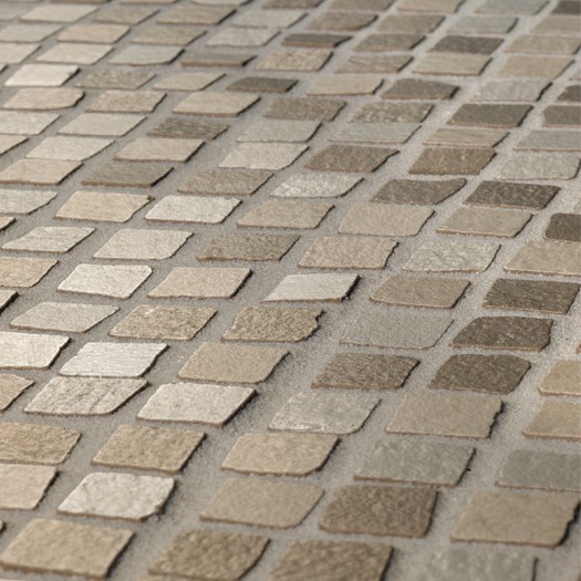 There contemporary beauty of this mosaic lies in the union between the astonishing technological performance of stoneware and the timeless aesthetic qualities of natural stone.