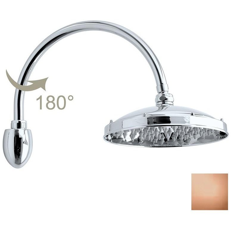 Retro'-arc shower head ø 230 mm 1 jet - curved swivel arm and 1/2" mx 1/2" m connections - copper