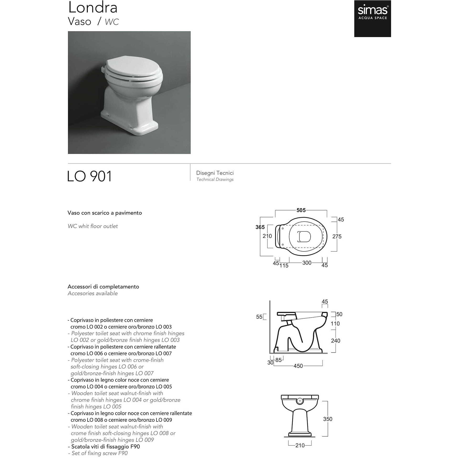 Classic retro-style sanitary ware; the series London of ceramics Simas leader of Made in Italy production it has a refined and rounded taste. The series is also counted among the so-called old England products due to their unmistakable style