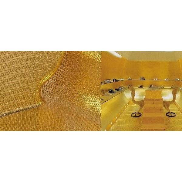 Weave square by format 2x2cm , coated in yellow gold leaf with relief effect , to give three-dimensionality to a mosaic that would leave you breathless on its own.