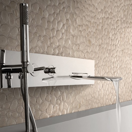 Innovative range of fully recycled full-body glass paste mosaics in river stone shapes. The solution for those who love the natural style of river stone but prefer the simplicity of a material suitable for any environment, without treatments, without maintenance and stain-resistant .