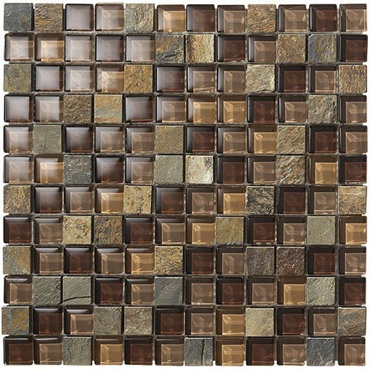 Ruggine colored slate, glass and marble mixed mosaic 30x30 cm, for wall covering - Nepal, Boxer
