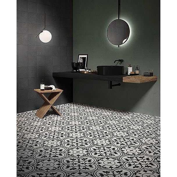 Unicom Starker proposes the tile in Reverie Nero 1 porcelain stoneware .