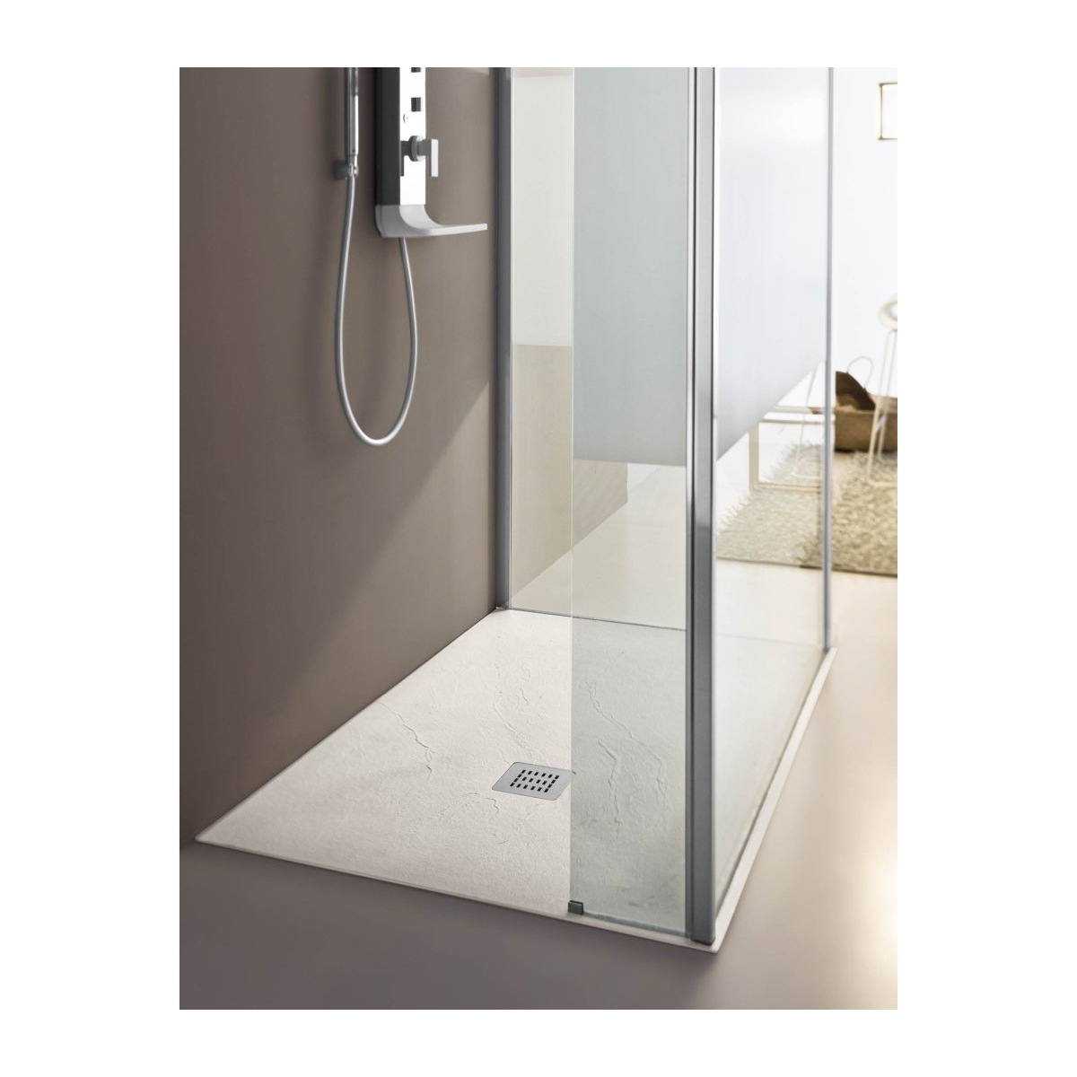 Shower tray in split stone effect resin, ivory white, 100x180x3 cm - Well, Arblu