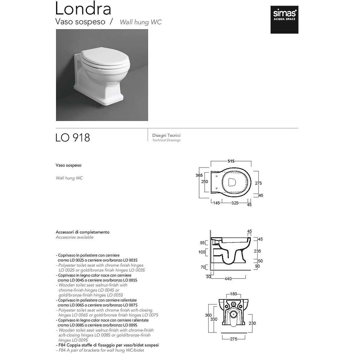 The Simas Londra LO 918 wall-hung toilet represents the excellence of classic style for your bathroom.