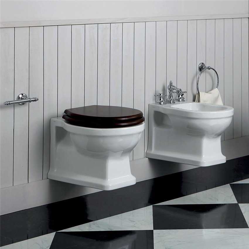 Made of premium glossy white ceramic, this sanitary ware combines the unmistakable charm of English retro design with the practicality of a wall-hung installation, the ideal solution to facilitate cleaning and visually expand the space.