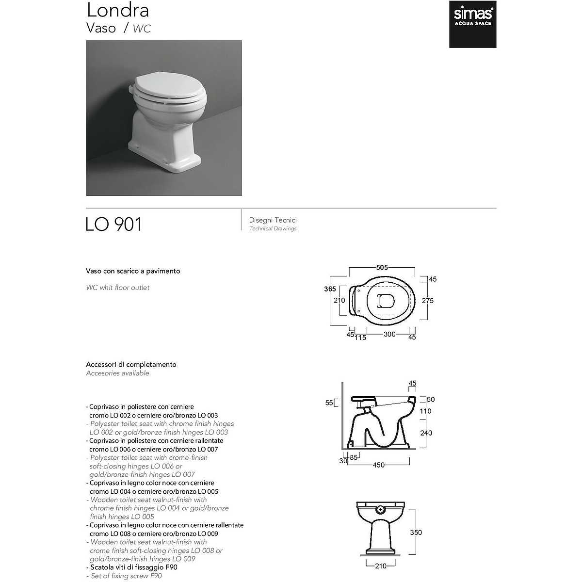 Simas Londra Old England style floor-standing WC in glossy white with floor drain