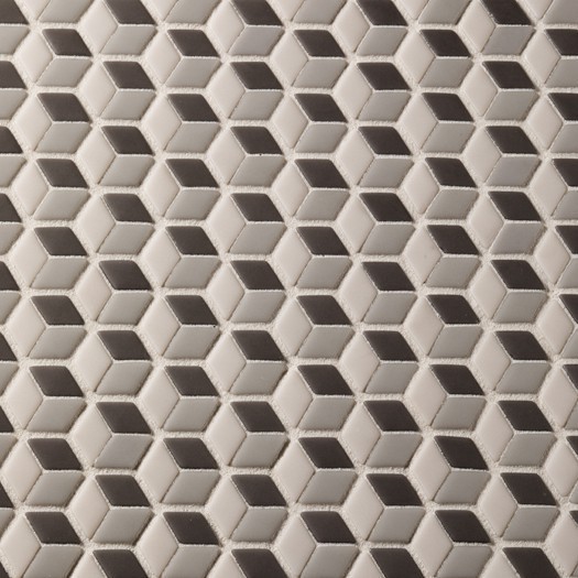 Range of fully recycled full-body glass paste mosaics in the most modern and up-to-date color variations and with tesserae forming the design of small cubes that appear in 3D when observed from a safe distance. 6 mm thick, on mesh. Ok floor, ok wall covering