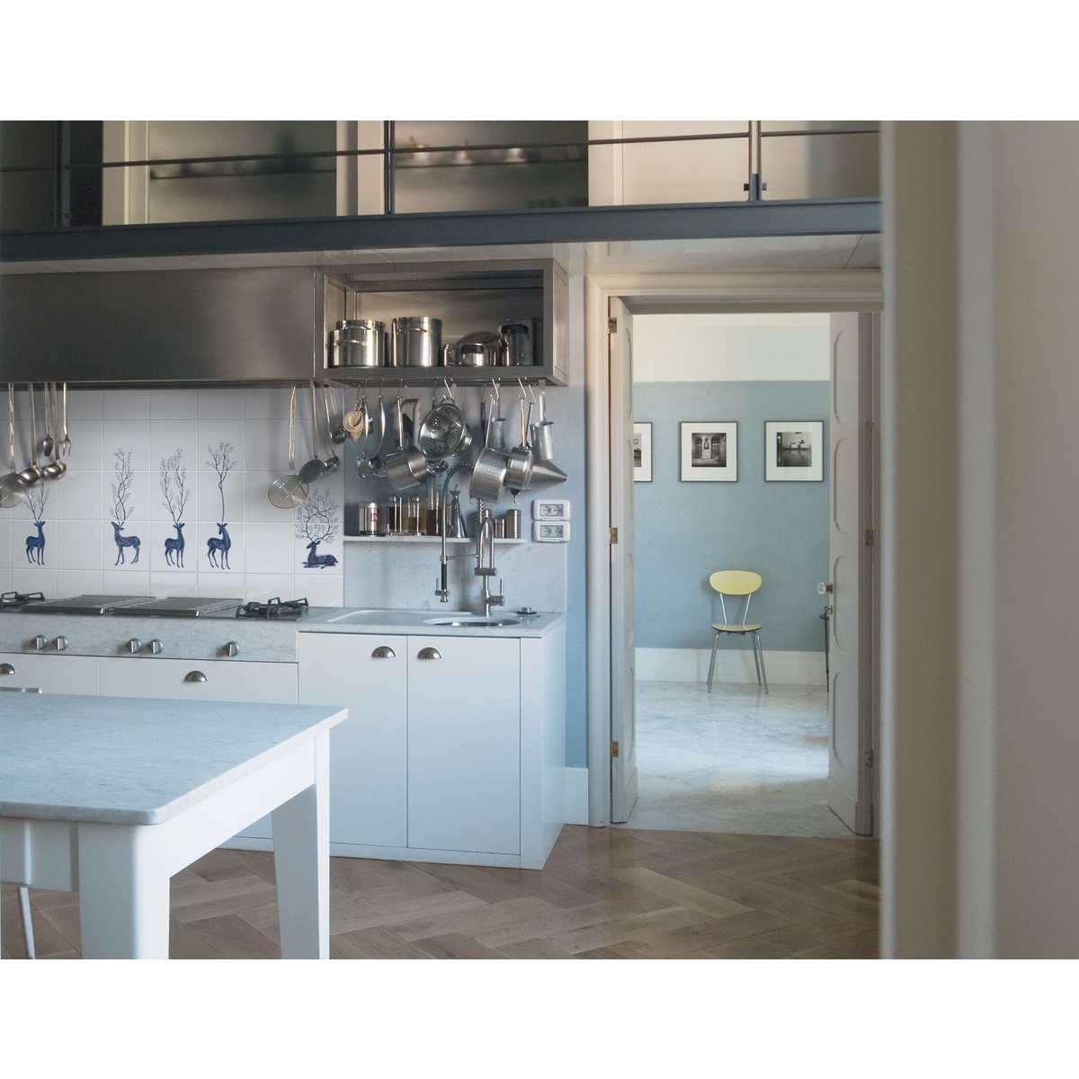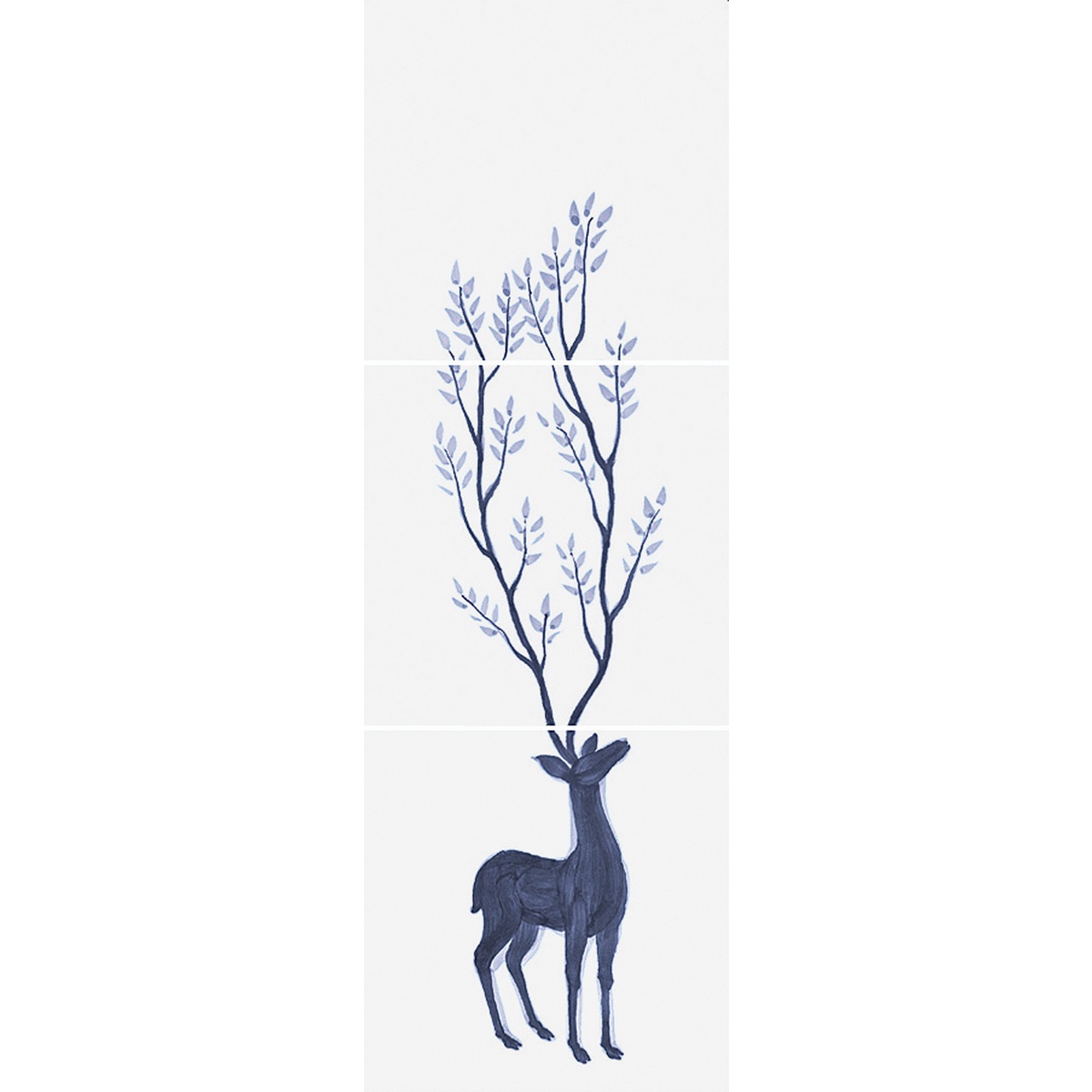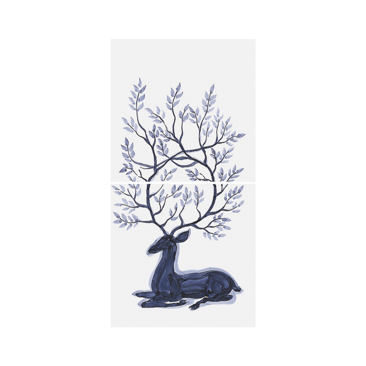 The Deer Wood 2 is a composition of 2 hand-drawn tiles on a high-gloss white background .