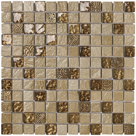 Wall mosaic in antiqued marble and glass, Ocher 30x30 cm - Tical, Boxer