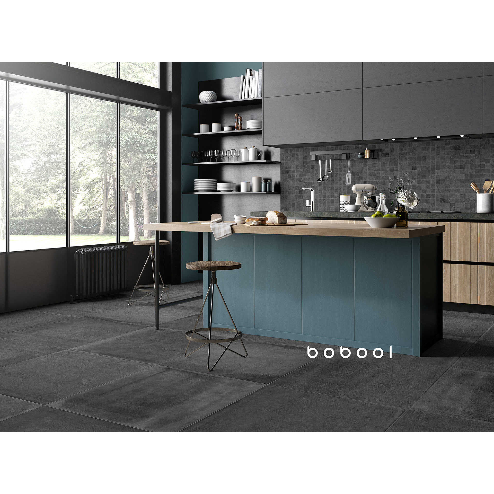 Grès cérame effet béton anthracite, Mosaico 30x30 cm - Entropia, Dom Ceramiche