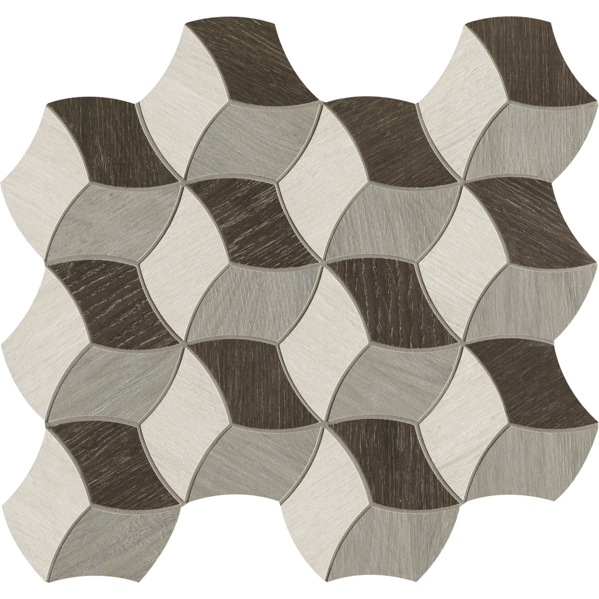 Grès cérame effet bois, décor géométrique en hélice, tons froids, 33,3x38,5 cm, Elica Cold - Comfort W, Dom Ceramiche