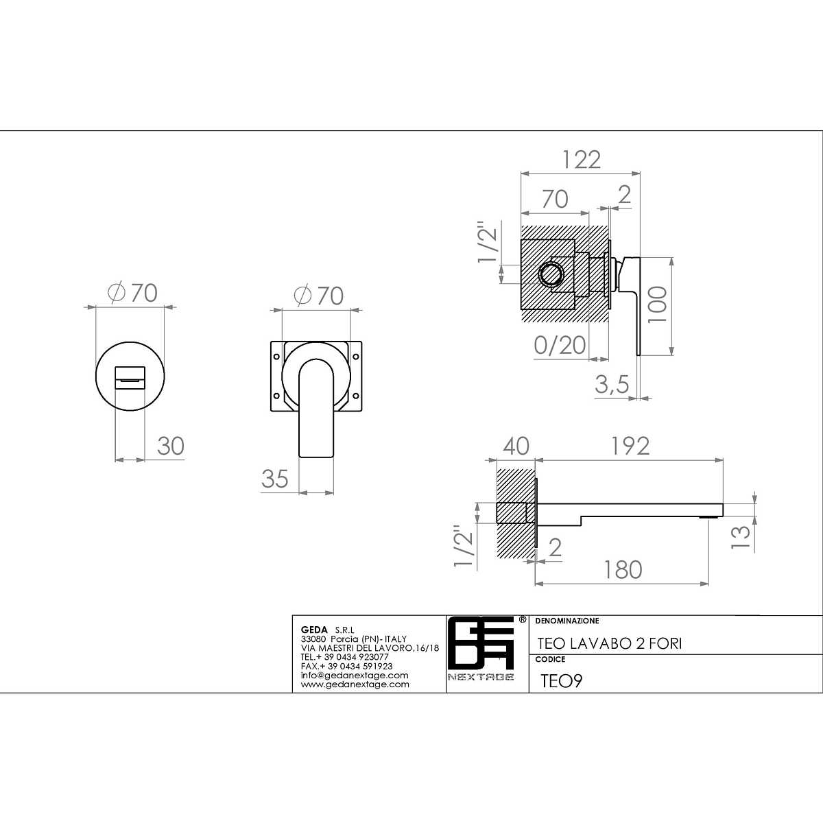 Les mitigeur de lavabo mural de la série Teo de Geda c'est un produit fabriqué en Italie d'une valeur esthétique et qualitative remarquable.