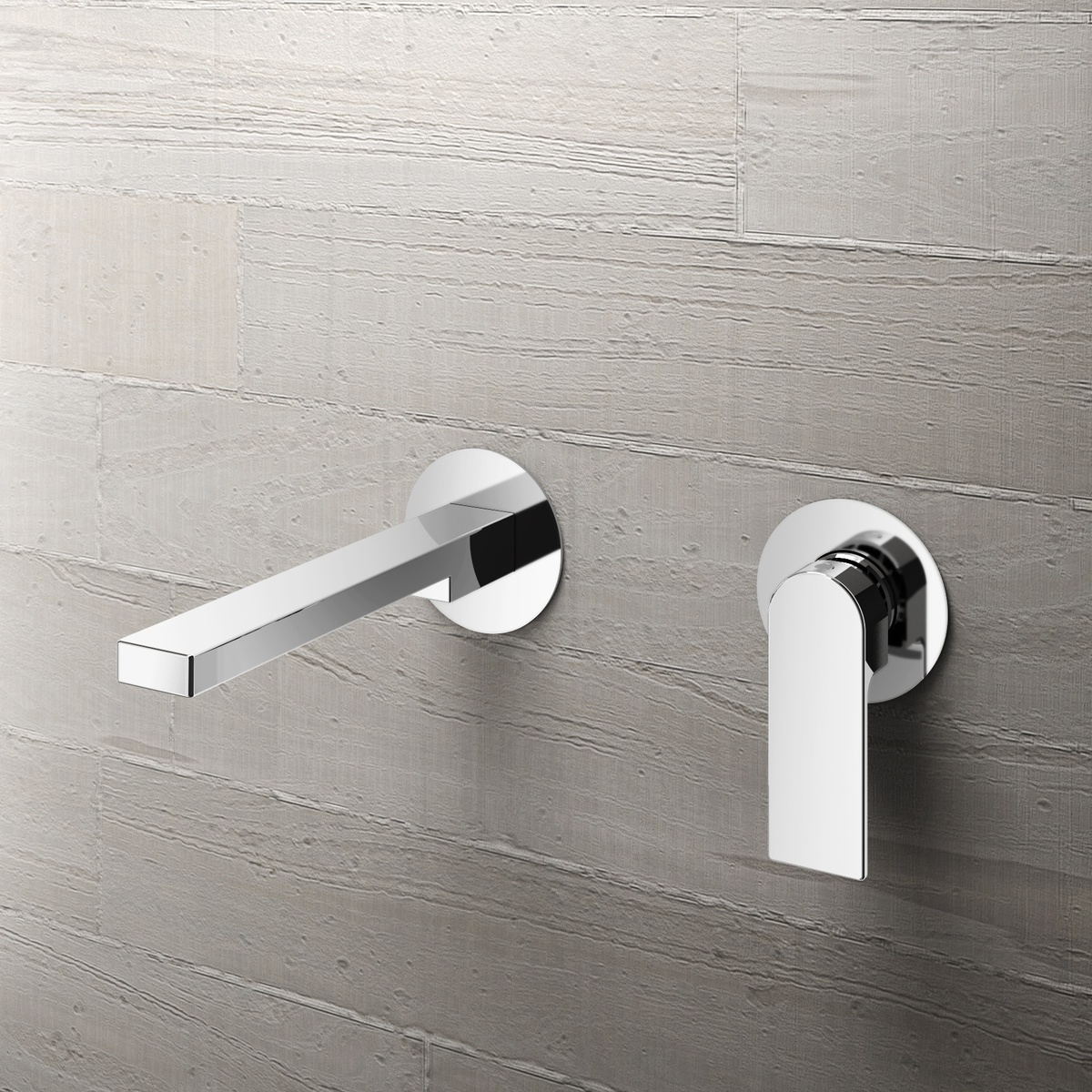 Mitigeur lavabo mural à encastrer avec bec chromé style moderne bec 18 cm - Teo, Geda