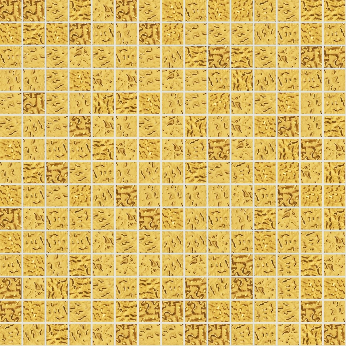 Tisser carré par format 2x2cm , recouvert de feuille d'or jaune avec effet relief , pour donner une tridimensionnalité à une mosaïque qui, à elle seule, vous couperait le souffle.