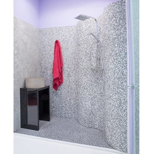 Gamme innovante de mosaïques en pâte de verre pleine masse entièrement recyclée en forme de pierre de rivière.La solution pour ceux qui aiment le style naturel de la pierre de rivière mais préfèrent la simplicité d'un matériau adapté à tout environnement, sans traitements, sans entretien et résistant aux taches.