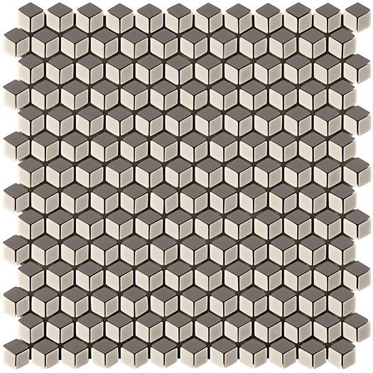Gamma di mosaici di pasta vetrosa a tutta massa, completamente riciclata, nelle declinazioni di colore più moderne ed attuali e con le tessere tese a formare il design di piccoli cubetti che appaiono in 3d quando osservati a debita distanza. Spessore 6 mm, su rete. Ok pavimento, ok rivestimento