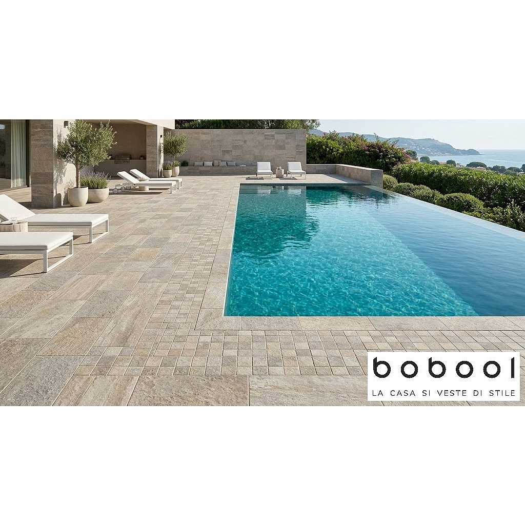 Realizzato in gres porcellanato di primissima scelta, questo pavimento per esterni unisce l'estetica autentica e le delicate sfumature calde della pietra naturale alle superiori prestazioni tecniche del gres. Grazie alla sua superficie strutturata, assicura un'eccellente resistenza allo scivolamento (R11), confermandosi la soluzione ideale e sicura per terrazze, patii, bordi piscina e percorsi pedonali.